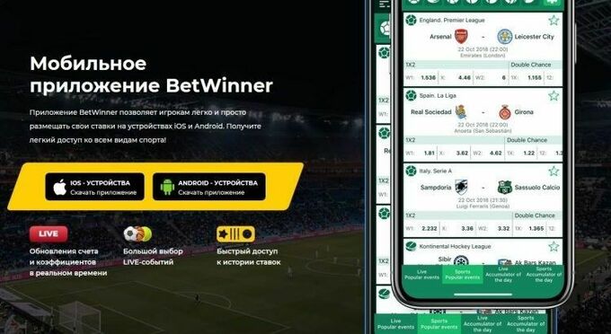 У букмекерской конторы Betwinner присутствует полноценная мобильная версия, как и у любого современного игрового сайта, причем существует две возможности получить к ней доступ. Первый вариант — адаптивная версия сайта, которую можно открыть на мобильном телефоне или планшете любого размера. Все элементы интерфейса и размеры имеющихся разделов автоматически подстраиваются под диагональ экрана устройства. Однако совершать ставки через браузер на смартфоне не всегда максимально удобно, поэтому оптимальным решением является загрузка специализированного мобильного приложения.