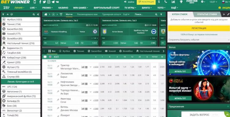 Первое, что видит игрок при открытии домена данной букмекерской конторы — удобный и функциональный портал с продуманным дизайном. Официальный сайт Betwinner представляет собой прекрасно выполненный ресурс, который предоставляет доступ к азартным развлечениям людям со всего мира независимо от их местоположения. Платформа выполнена в приятных глазу зелено-белых тонах, которые не утомляют зрение даже при длительной игре. Благодаря продуманному расположению всех пунктов меню в каждом разделе несложно найти необходимую информацию или функцию для конкретного игрока.